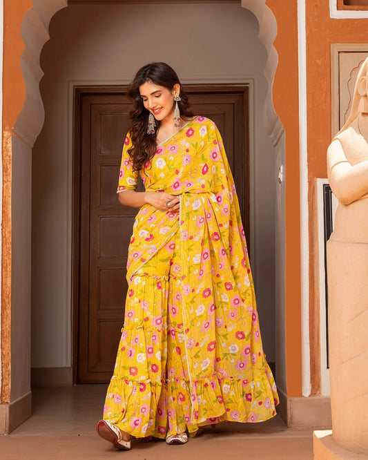 ADORNING YELLOW COLOUR TRADITIONAL LOOKING CHANDERI COTTON SAREE